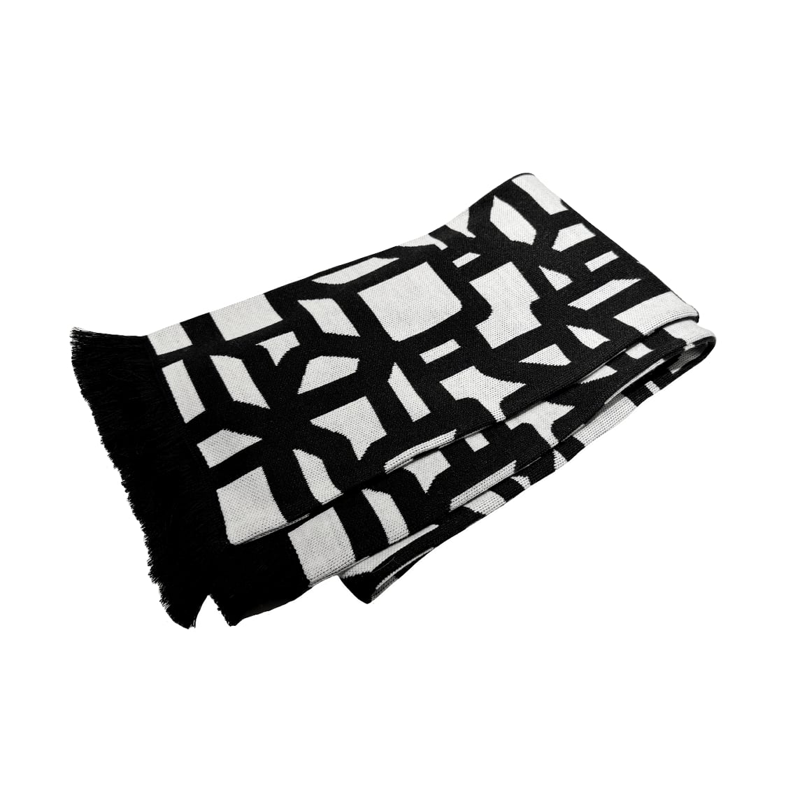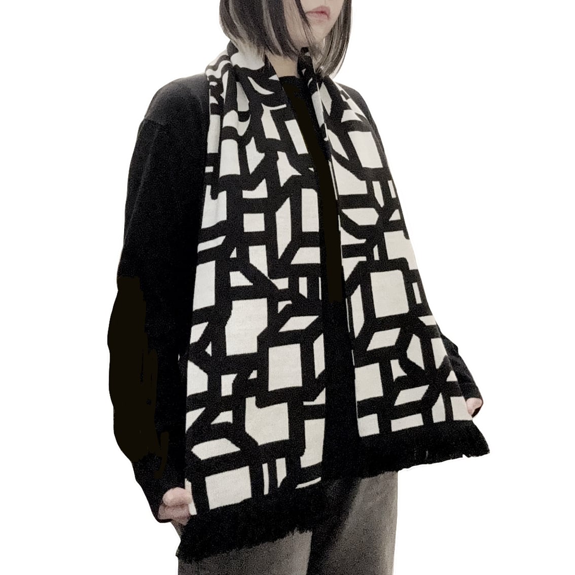 白と黒の糸のみで編まれた両面デザイン。